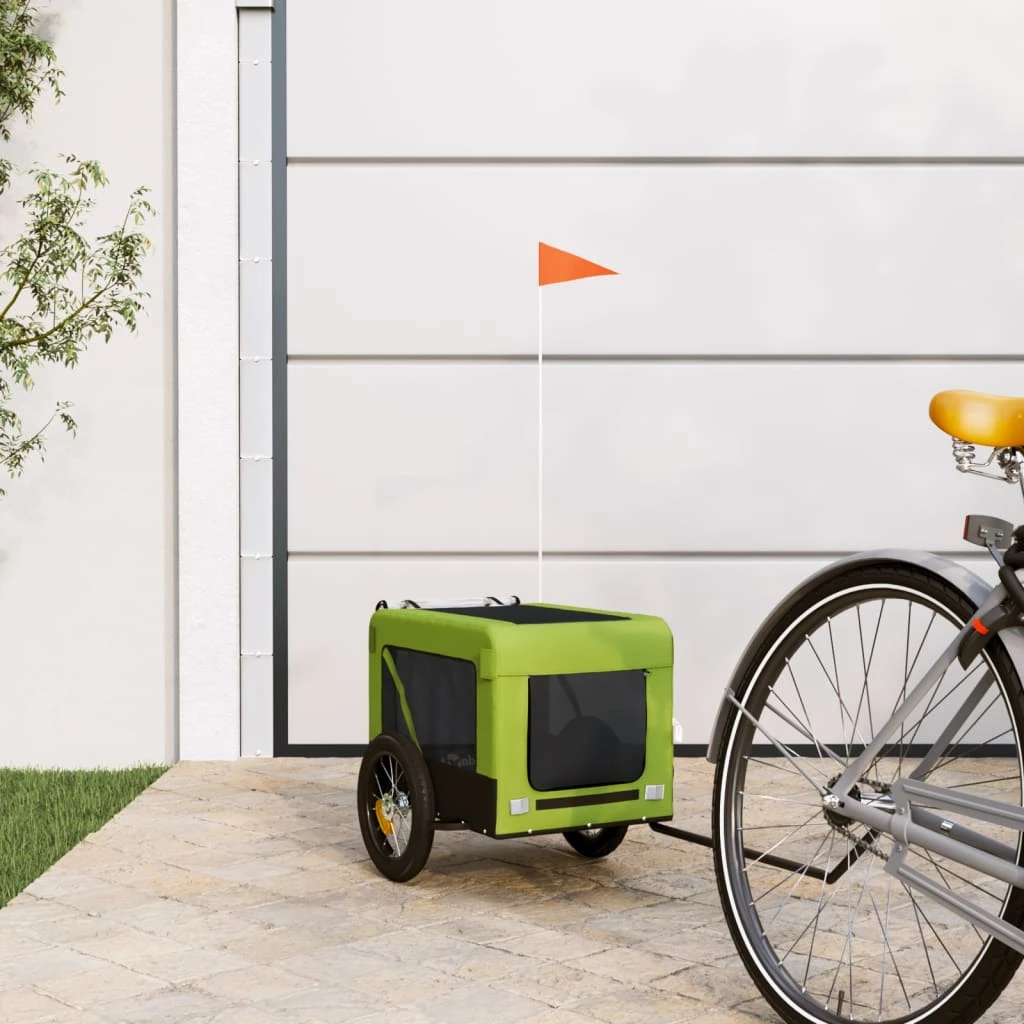 vidaXL mājdzīvnieku velo piekabe, zaļa ar melnu, audums un dzelzs