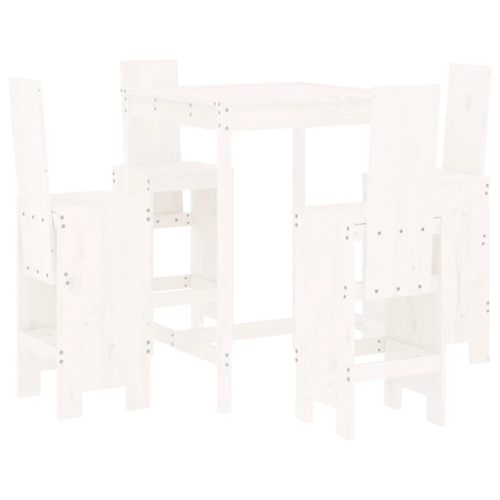 vidaXL 5-daļīgs dārza bāra mēbeļu komplekts, priedes masīvkoks, balts