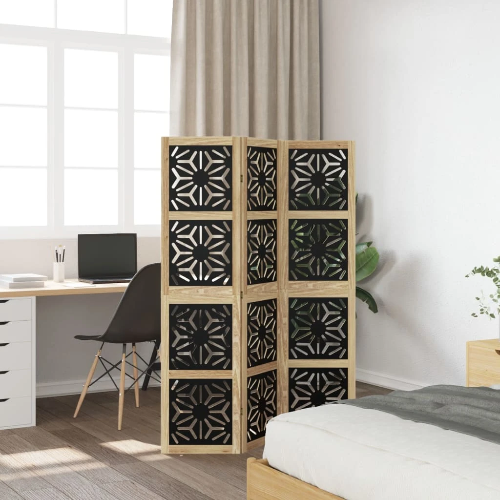 vidaXL 5-paneļu istabas aizslietnis, balts, paulonijas masīvkoks