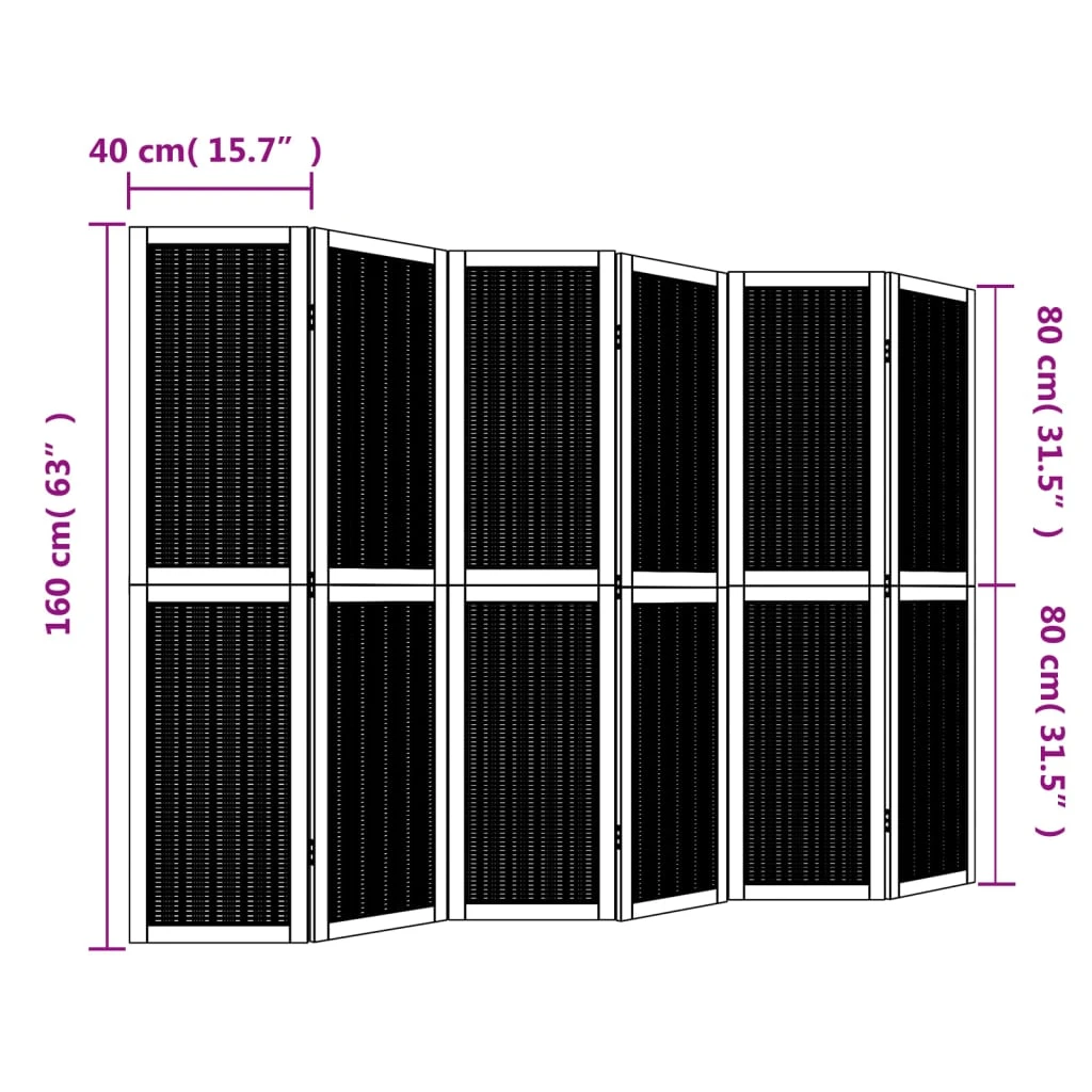 vidaXL istabas sadalītājs, 6 paneļi, brūna polirotangpalma