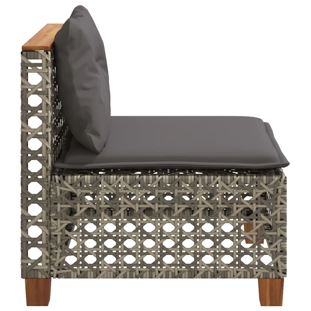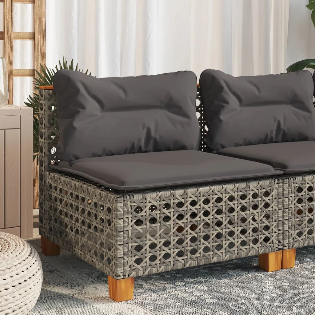 vidaXL dārza dīvāns, matrači, bez roku balstiem, pelēka PE rotangpalma