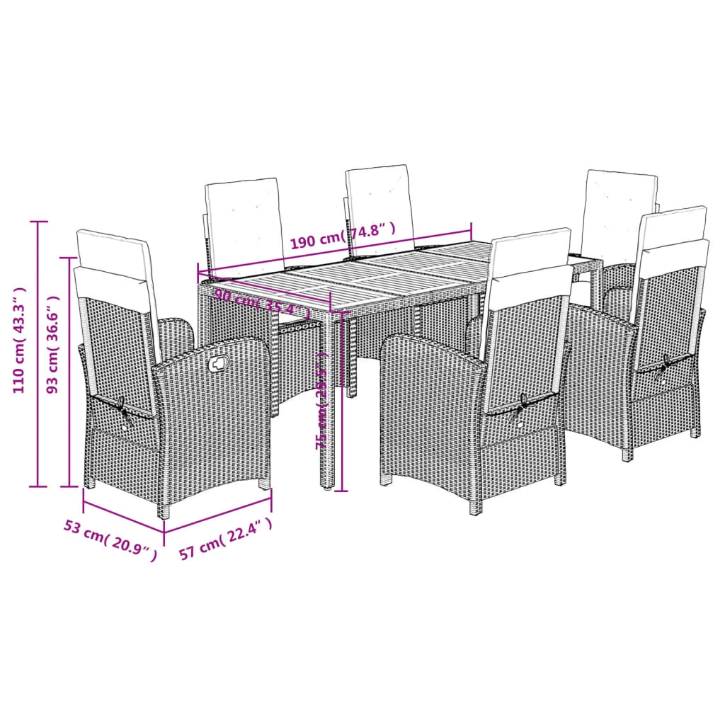 vidaXL 7-daļīgs dārza mēbeļu komplekts ar matračiem, PE rotangpalma