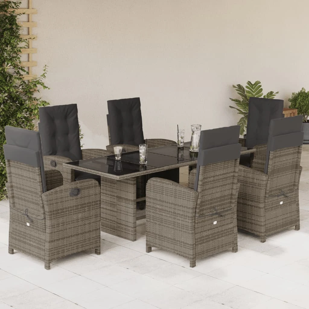 vidaXL 7-daļīgs dārza mēbeļu komplekts, matrači, pelēka PE rotangpalma