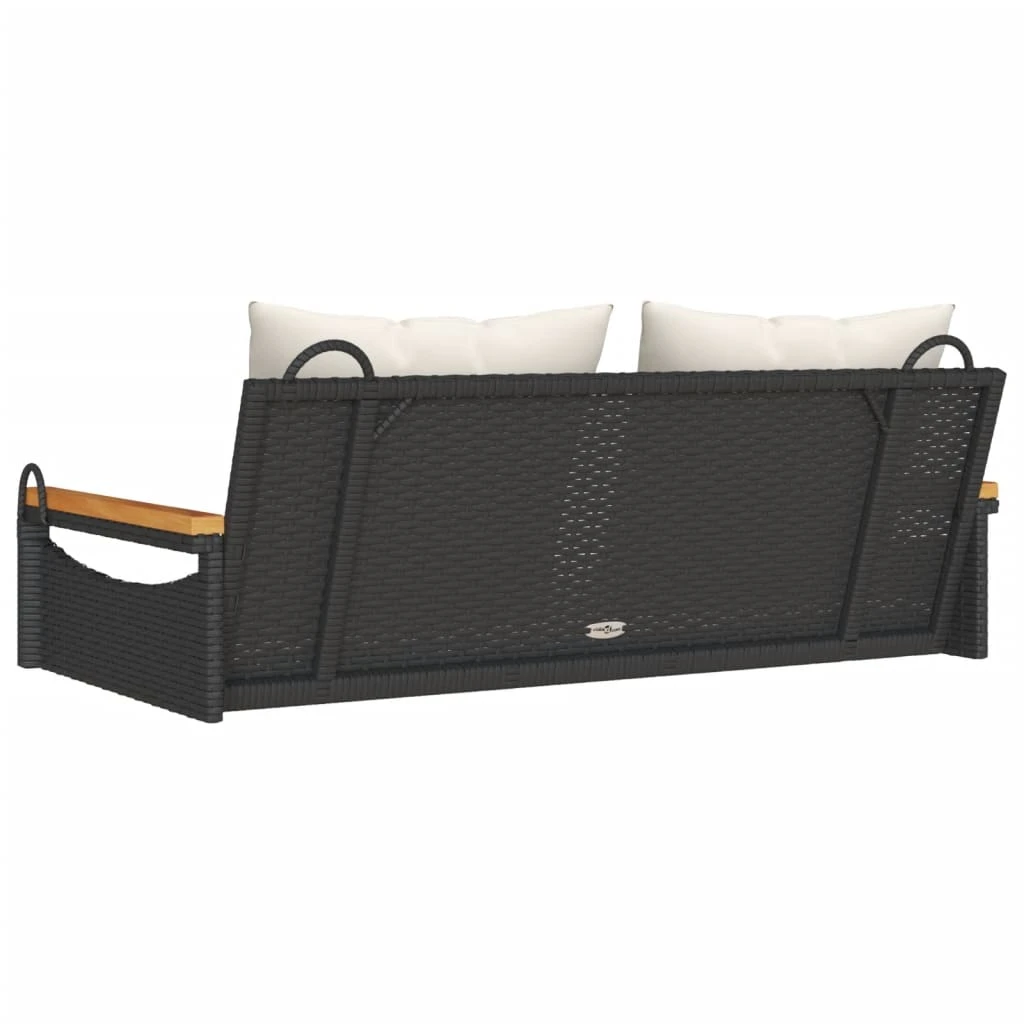 vidaXL šūpoļu sols ar spilveniem, melns, 109x62x40 cm, PE rotangpalma
