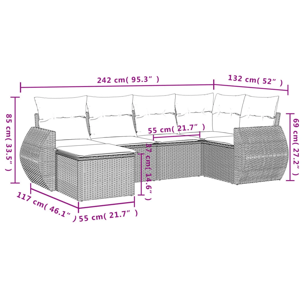 vidaXL Dārza dīvānu komplekts ar uzglabāšanu 6 pcs Brūna poliratāns