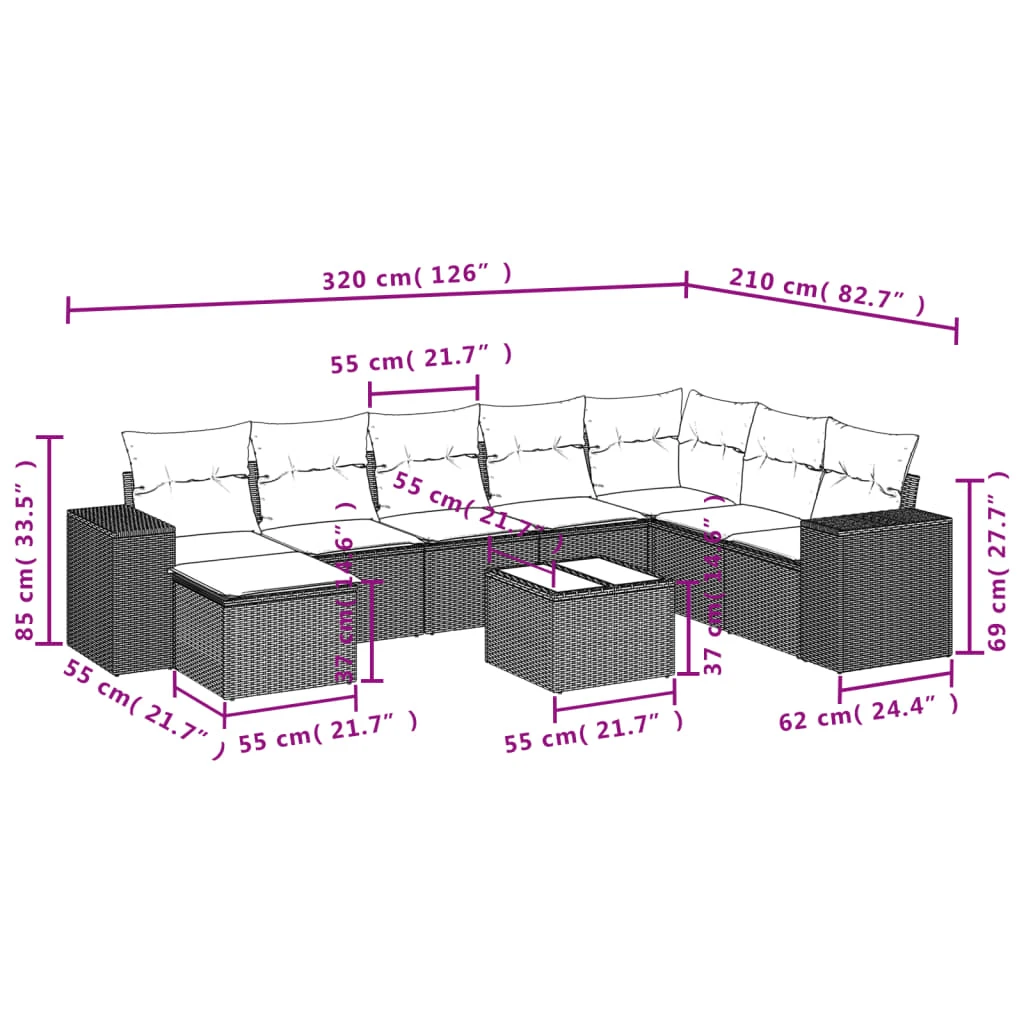 vidaXL 4 daļu dārza dīvānu komplekts ar spilveniem, akācija un rotangpalma