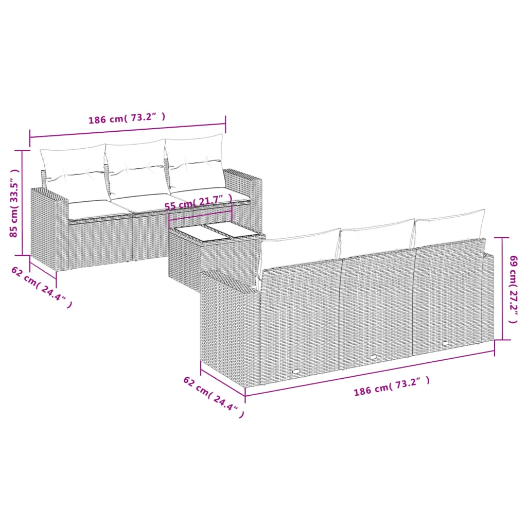 vidaXL 7-daļīgs dārza dīvāna komplekts, matrači, bēša PE rotangpalma