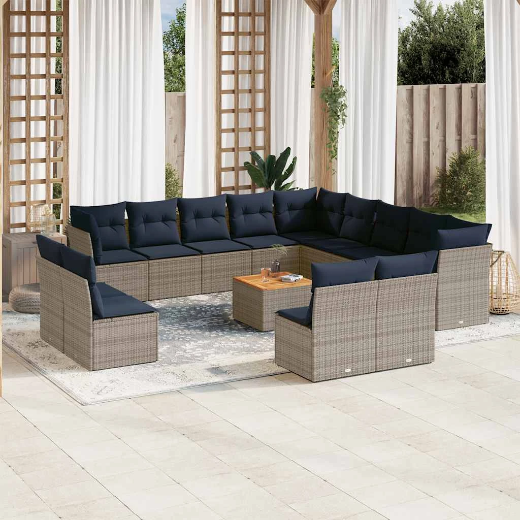 vidaXL 14-daļīgs dārza dīvānu komplekts, matrači,pelēka PE rotangpalma