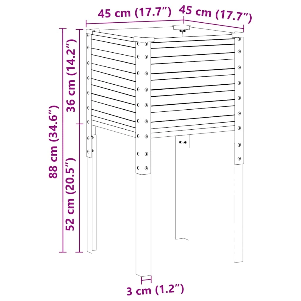 vidaXL dārza puķu kaste, balta, 100x100x46 cm, priedes masīvkoks