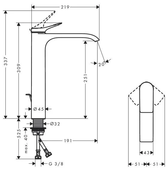 Zīmols- Hansgrohe. Montāžas tips- Stiprināms uz virsmas. Garums- 19.1 cm. Platums- 4.5 cm. Augstums- 30.9 cm. Krāsa- Hroma. Materiāls- Misiņš. Savienotājs- G3/8. Caurplūdes koeficients- 5 l/min. Rokturu skaits- 1. Izvelkamas galvas- Nē. Pamatnes vārsts komplektā- Jā. Obligātā garantija- 24 mēn. Papildus informācija- Ūdenskrituma tipa strāva. "EcoSmart" tehnoloģija - patērē līdz 60 % mazāk ūdens nekā parastie izstrādājumi..