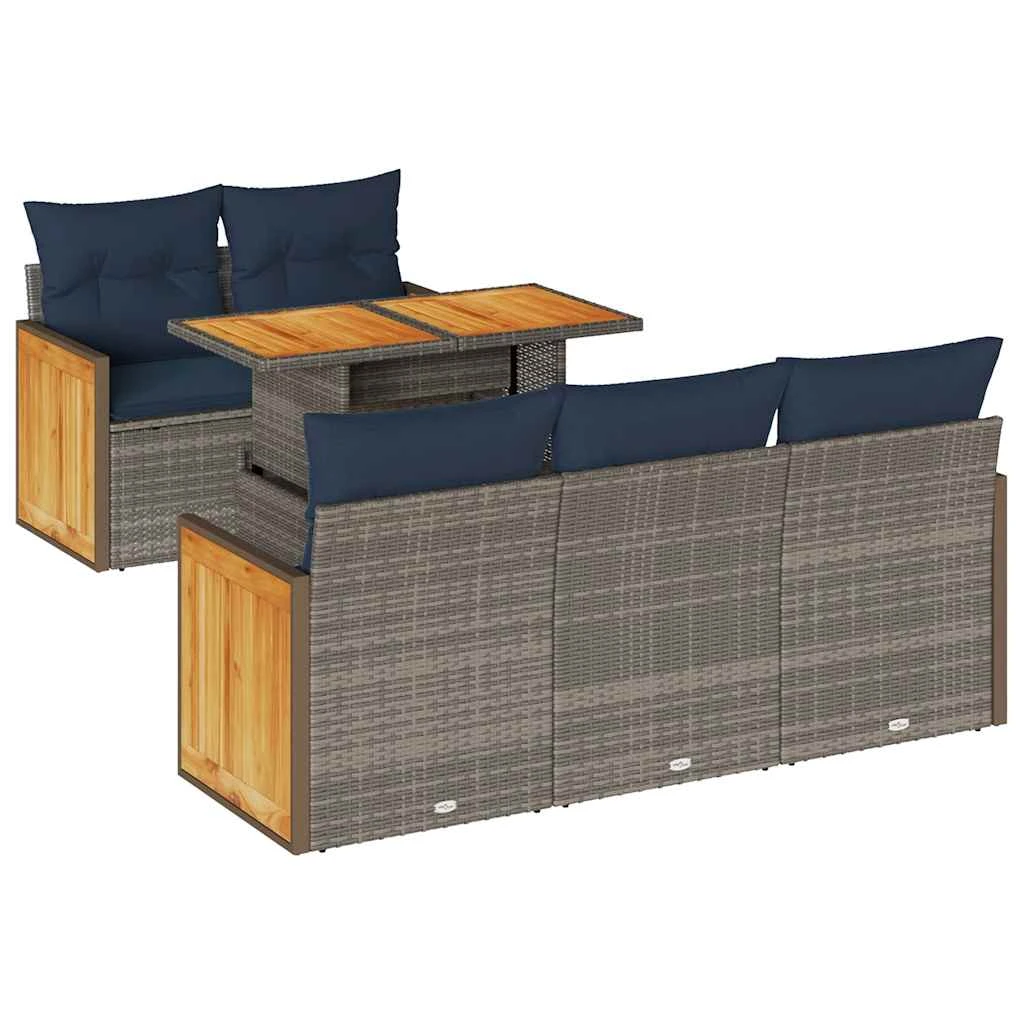 vidaXL 6-daļīgs dārza dīvāna komplekts, matrači, pelēka PE rotangpalma