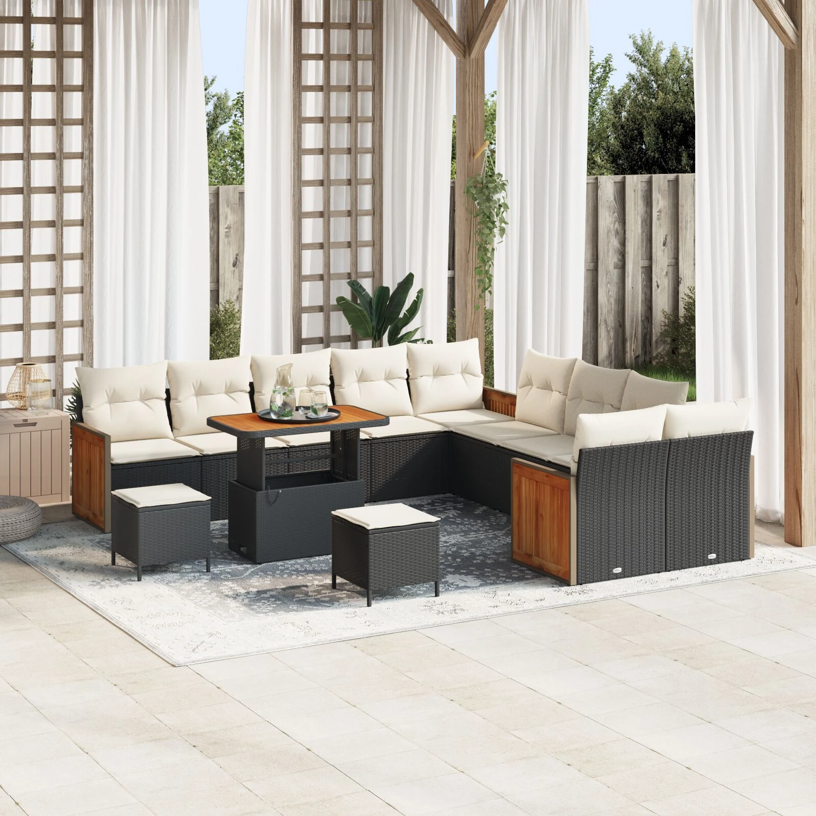vidaXL Dīvānu komplekts 7 pcs Melns un Krēmkrāsa poliratāns