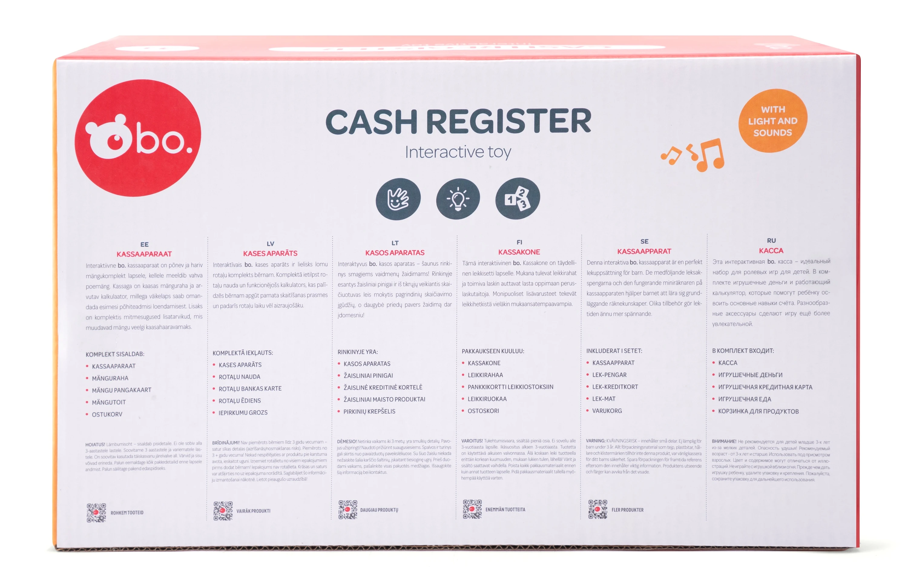 Interaktīvais bo. kases aparāts ir lielisks lomu rotaļu komplekts bērnam. Komplektā ietilpst rotaļu nauda un funkcionējošs kalkulators, kas palīdzēs bērnam apgūt pamata skaitīšanas prasmes un padarīs rotaļu laiku vēl aizraujošāku.