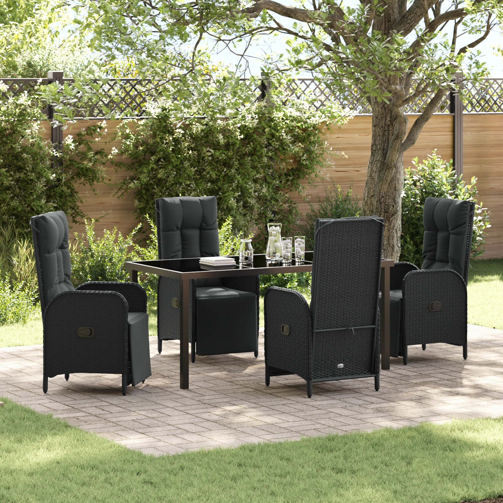vidaXL Dārza ēdamgalds ar spilvenu 7 pcs Brūna poliratāns