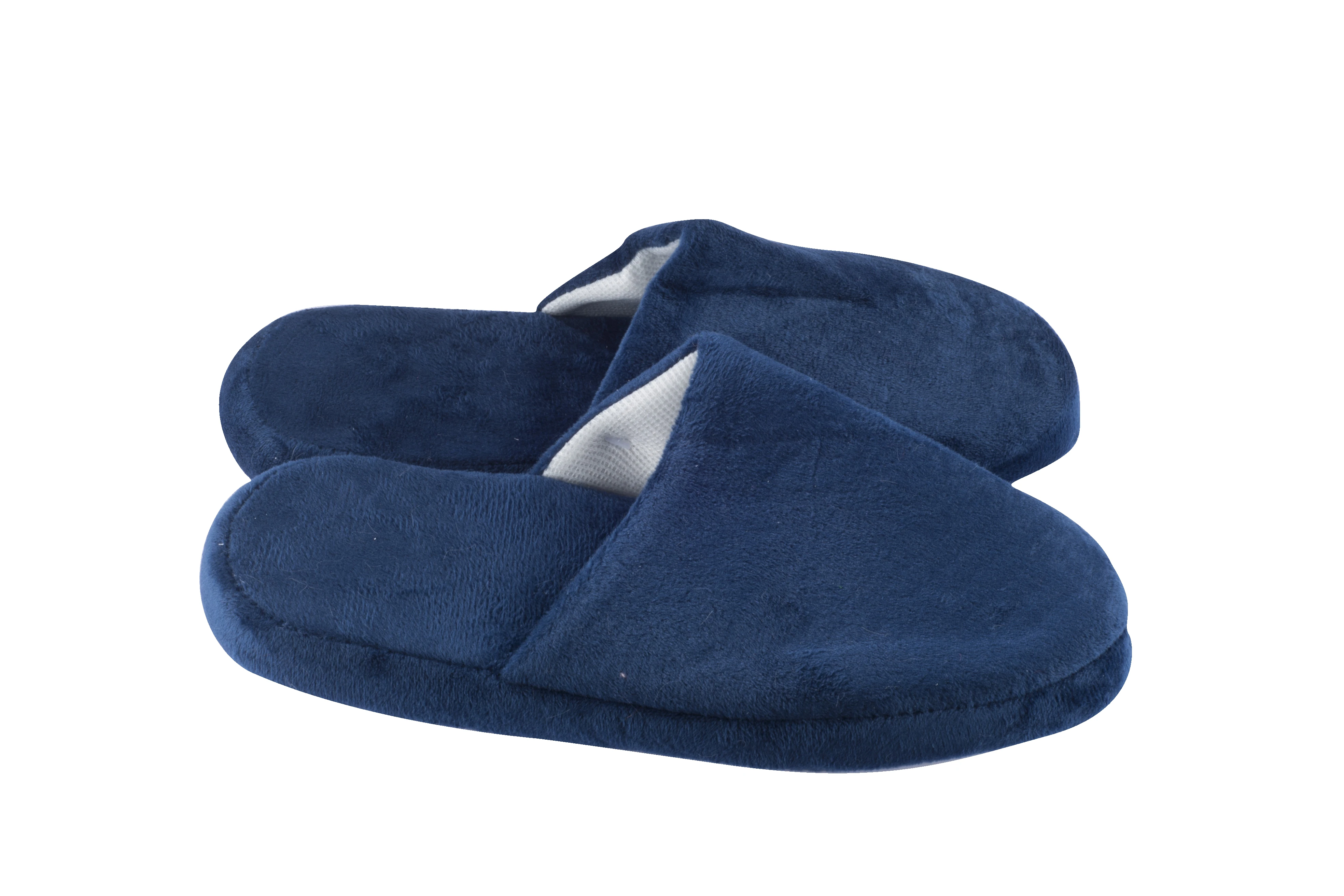 Tumši zilas istabas čības izgatavotas no mīksta auduma, ar mīkstu oderi, nodrošinot siltumu un komfortu. Tās ir piemērotas ikdienas valkāšanai mājās, pasargājot kājas no vēsuma. Izmērs 36 / 37.