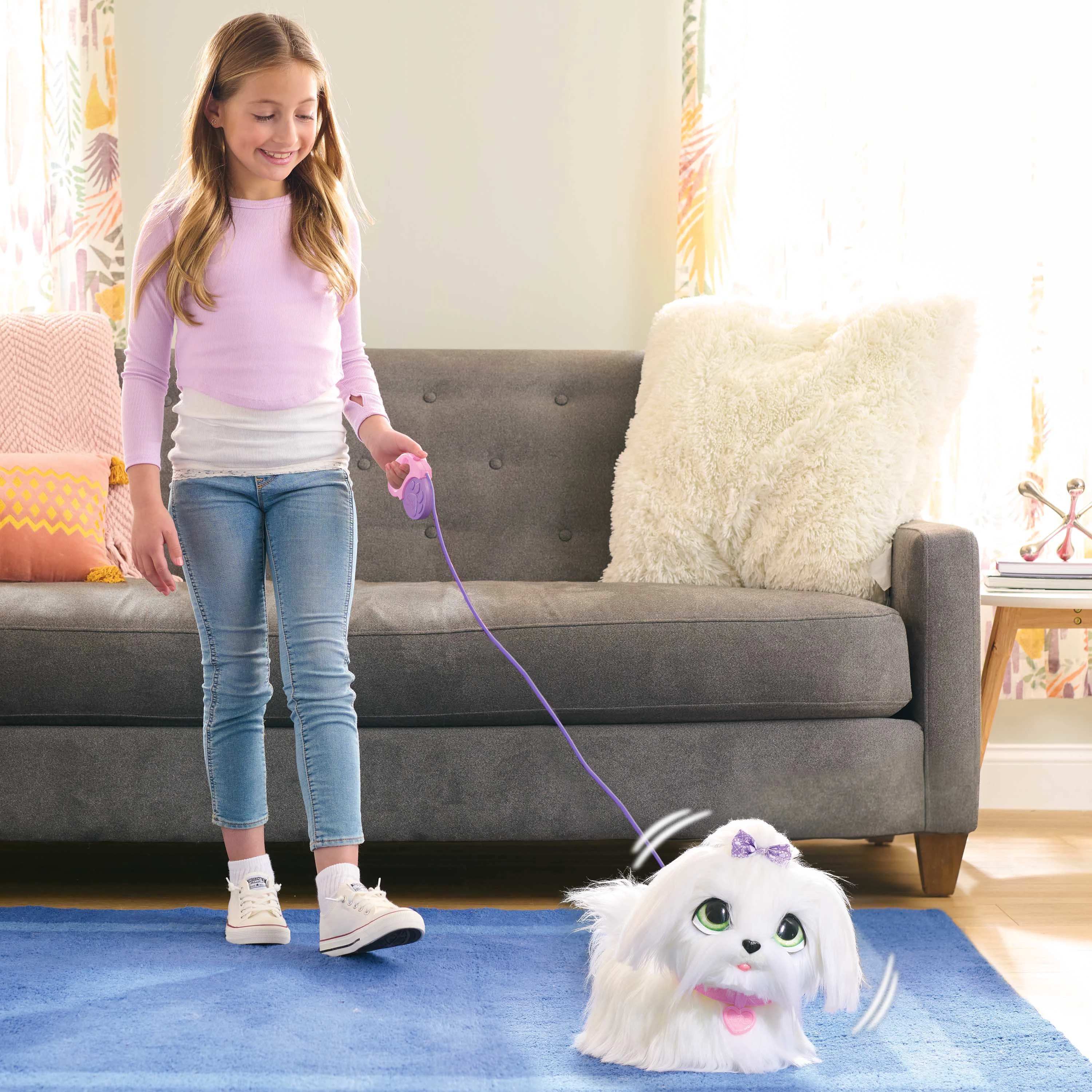 Esiet gatavi bezgalīgai jautrībai un piedzīvojumiem ar FURREAL GoGo staigājošo kucēnu, kas ir lielisks interaktīvais lolojumdzīvnieks! Uzlieciet suņukam pavadiņu un vērojiet, kā tas braši iet jums blakus. Ļaujiet dzīvnieciņam izlādēt enerģiju: kad siksniņa ir noņemta, GoGo dzīvnieciņš griežas un sajūsmā lēkā apkārt! GoGo suņuks rej, griežas un pat izdod priecīgas skaņas, lai parādītu, cik ļoti tam patīk būt par jūsu jauno labāko draugu. Izmantojiet komplektā iekļauto ķemmīti un divas burvīgas sprādzītes, lai ieveidotu sunītes kažociņu un radītu pasakainu izskatu.