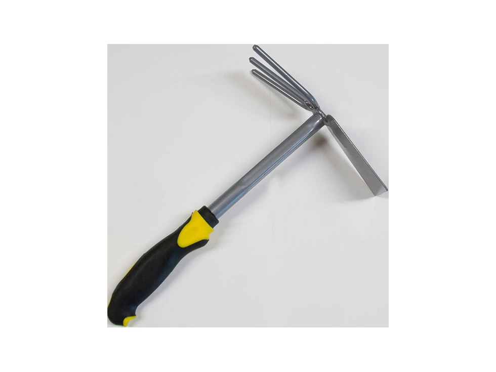 Besk rokas kultivators ar kaplīti ir efektīvs rīks ravēšanai, kaplēšanai un augsnes irdināšanai pat grūti sasniedzamās vietās. Praktiskais dizains ar trim kultivatora zariem vienā pusē un kapli otrā nodrošina daudzpusīgu pielietojumu dažādos dārza darbos. Ergonomiskais rokturis ļauj strādāt ērti un precīzi, samazinot roku nogurumu. Šis instruments ir ideāli piemērots ikvienam dārzniekam, kurš vēlas vienkāršot un paātrināt augsnes apstrādi.