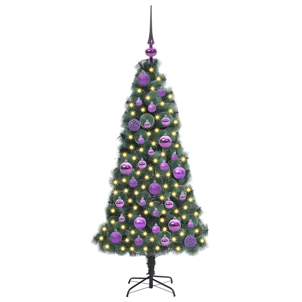 vidaXL izgaismota mākslīgā Ziemassvētku egle ar bumbām, 150 cm, zaļa