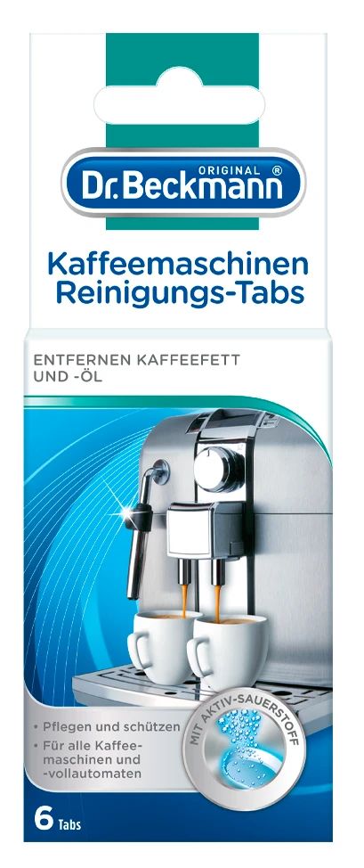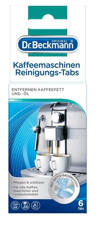 Zīmols- Dr. Beckmann. Vienību skaits iepakojumā- 6. Obligātā garantija- 24 mēn. Garantija juridiskām personām- 12 mēn. Papildus informācija- 6 tabletes. Notīra dažādas nogulsnes. kafijas taukus un eļļas. Aizsargā un nodrošina kafijas automāta nevainojamu darbību. Paredzētas automātiskajiem un pusautomātiskajiem kafijas aparātiem. rokas kafijas spiedēm. termosiem un kafijas kannām..