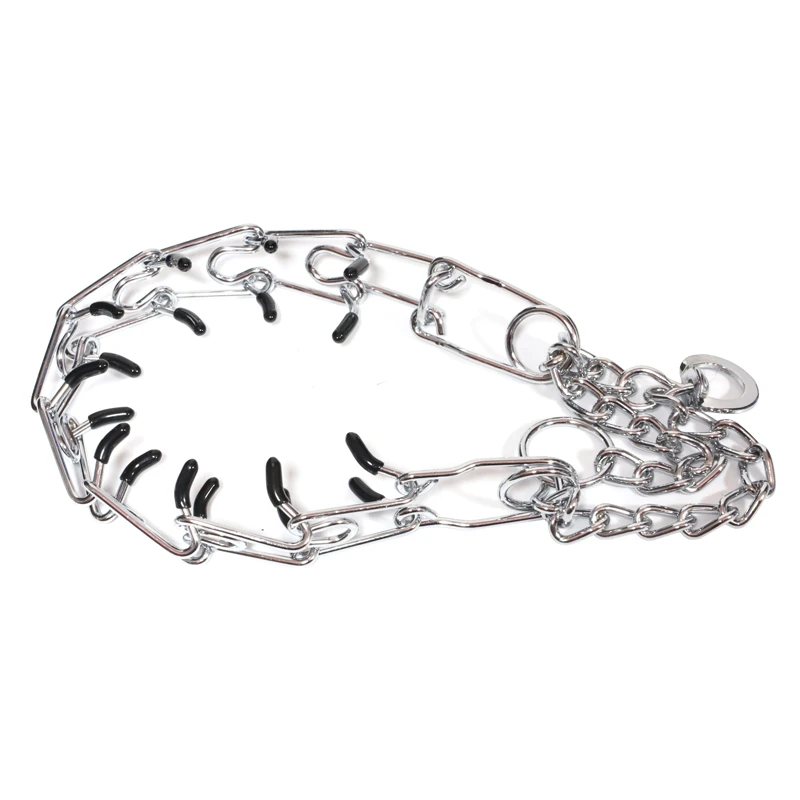 Metāla kaklasiksna ar stimulējošiem gumijas uzgaļiem ir īpaši paredzēta suņu apmācībai un uzvedības korekcijai. Izgatavota no izturīga metāla ar dzelkšņu konstrukciju un gumijas uzgaļiem, kas nodrošina drošību un komfortu dzīvniekam. Kaklasiksna ir regulējama, ļaujot to pielāgot dažādu izmēru suņiem un nodrošinot ērtu lietošanu apmācību laikā. Izmērs 3 x 50 cm.
