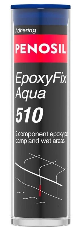 Zīmols- Penosil. Artikuls- H4868. Līmes veids- Epoksīda. Paredzētais pielietojums- Metāls. Koka. Keramikas. Līmes krāsa- Balta. Svars- 0.06 kg. Tilpums- 0.03 l. Īpašības- PENOSIL Epoxy Fix Aqua 510 ir divkomponentu ātri cietējoša epoksīda špaktele ātriem remontdarbiem mitrās un slapjās vietās. Piemērota arī zemūdens virsmu stiprināšanai un dažādu priekšmetu modelēšanai. piemēram. pogām. rokturiem. rotājumiem utt. Nav piemērota vispārējiem būvdarbiem.. Uzglabāšanas temperatūra- 5 - 30°C. Pilnīgi sausa pēc- 1 - 1h. Var būt krāsots- Jā. Ūdensnoturīgs- Jā. Signālvārds- UZMANĪBU. Bīstamības paziņojumi- EUH205 Satur epoksīda sastāvdaļas. Var izraisīt alerģisku reakciju.. H315 Kairina ādu.. H317 Var izraisīt alerģisku ādas reakciju.. H319 Izraisa nopietnu acu kairinājumu.. H412 Kaitīgs ūdens organismiem ar ilgstošām sekām.. Piesardzības frāze prevencijas dēļ- P101 Medicīniska padoma nepieciešamības gadījumā attiecīgā informācija ir norādīta uz iepakojuma vai etiķetes.. P102 Sargāt no bērniem.. P103 Uzmanīgi izlasiet visas instrukcijas un ievērojiet tās.. P280 Izmantot aizsargcimdus/aizsargapģērbu/acu aizsargus/sejas aizsargus/dzirdes aizsarglīdzekļus.. Drošības prasību apzīmējums. Reakcija- P302 + P352 SASKARĒ AR ĀDU: nomazgāt ar lielu ūdens/.. daudzumu.. P305 + P351 + P338 SASKARĒ AR ACĪM: Uzmanīgi izskalot ar ūdeni vairākas minūtes. Izņemt kontaktlēcas. ja tās ir ievietotas un ja to var vienkārši izdarīt. Turpināt skalot.. Drošības prasību apzīmējums. Iznīcināšana- P501 Atbrīvoties no satura/ tvertnes saskaņā ar vietējiem/ reģionālajiem/ nacionālajiem/ starptautiskajiem noteikumiem.. Papildus informācija- Flīžu. fileju. pogu u.c. remonts un atjaunošana peldbaseinos. vannas istabās un dušas telpās..Virsbūvju un klāju. tekošu blīvējumu. notekcauruļu un tvertņu remonts un blīvēšana..Modelēšanas pogas. rokturi. rotājumi..