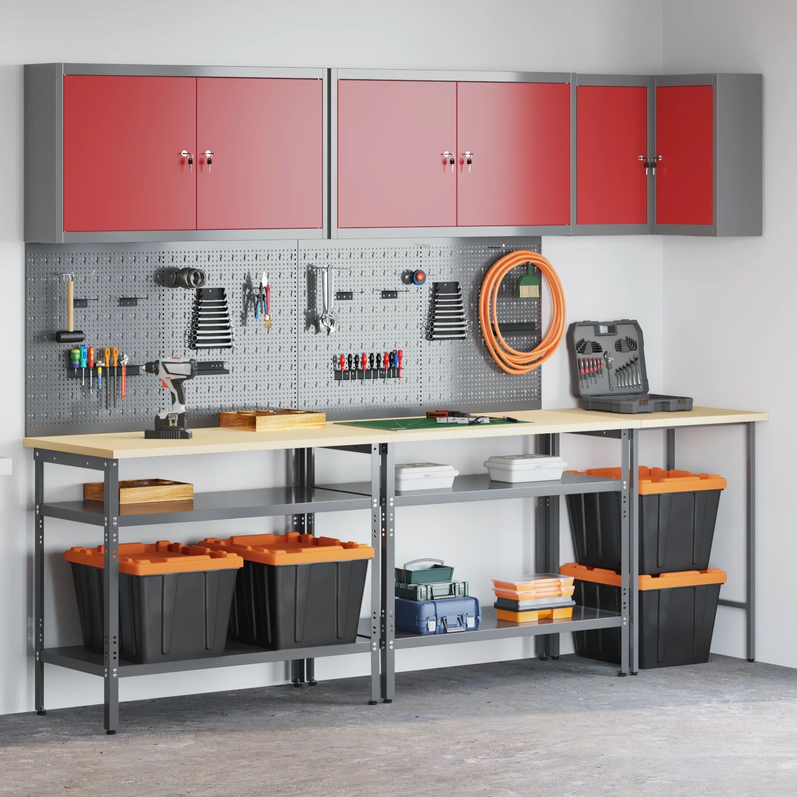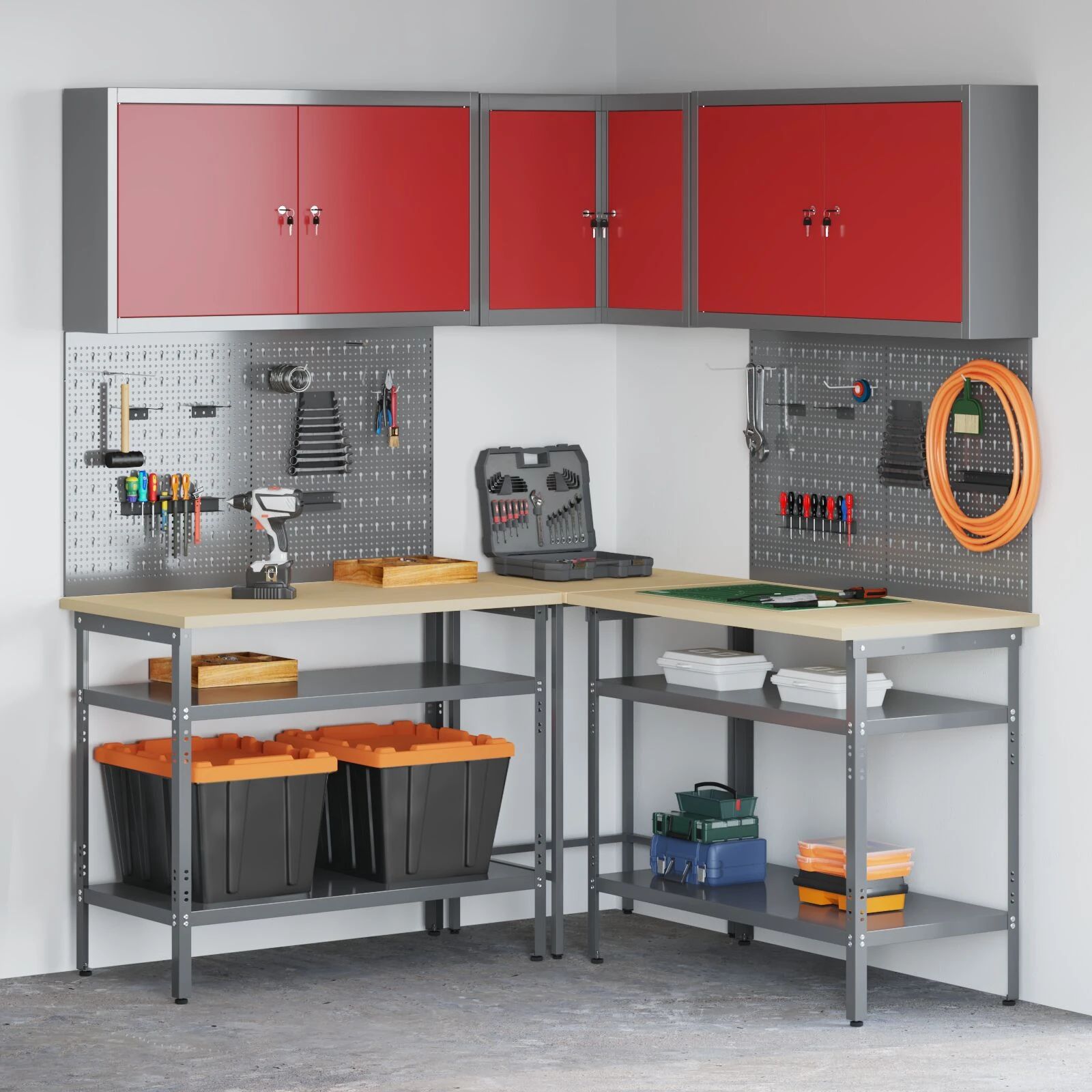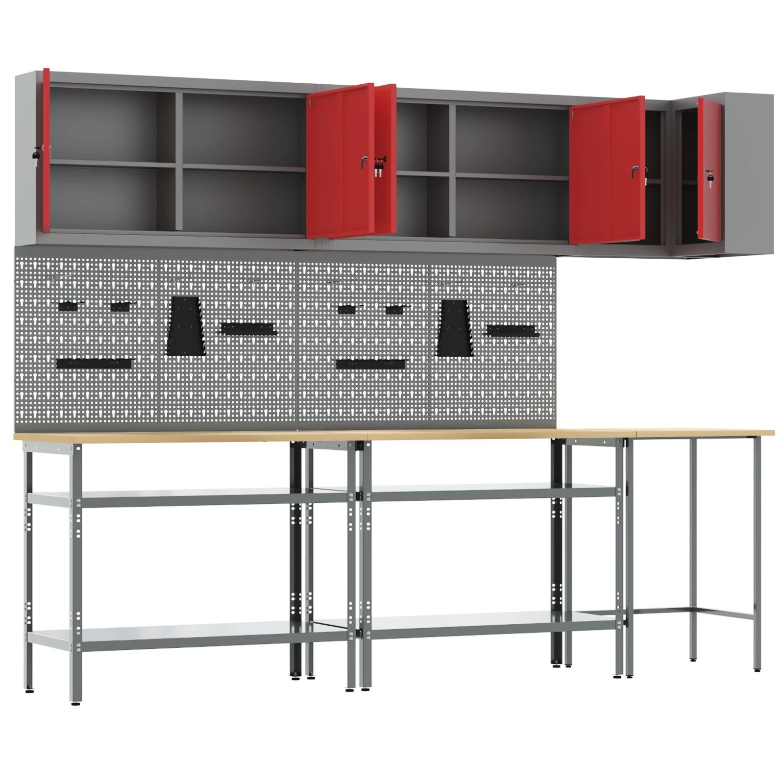 Šis izturīgais darba skapju komplekts piedāvā stilīgu un praktisku risinājumu rīku organizēšanai tavā darbnīcā. Ar tīrām līnijām un minimālu ornamentāciju, šis skapju komplekts apvieno funkcionalitāti un estētiku, padarot jebkuru darbnīcu izskatā profesionālu un vienotu.