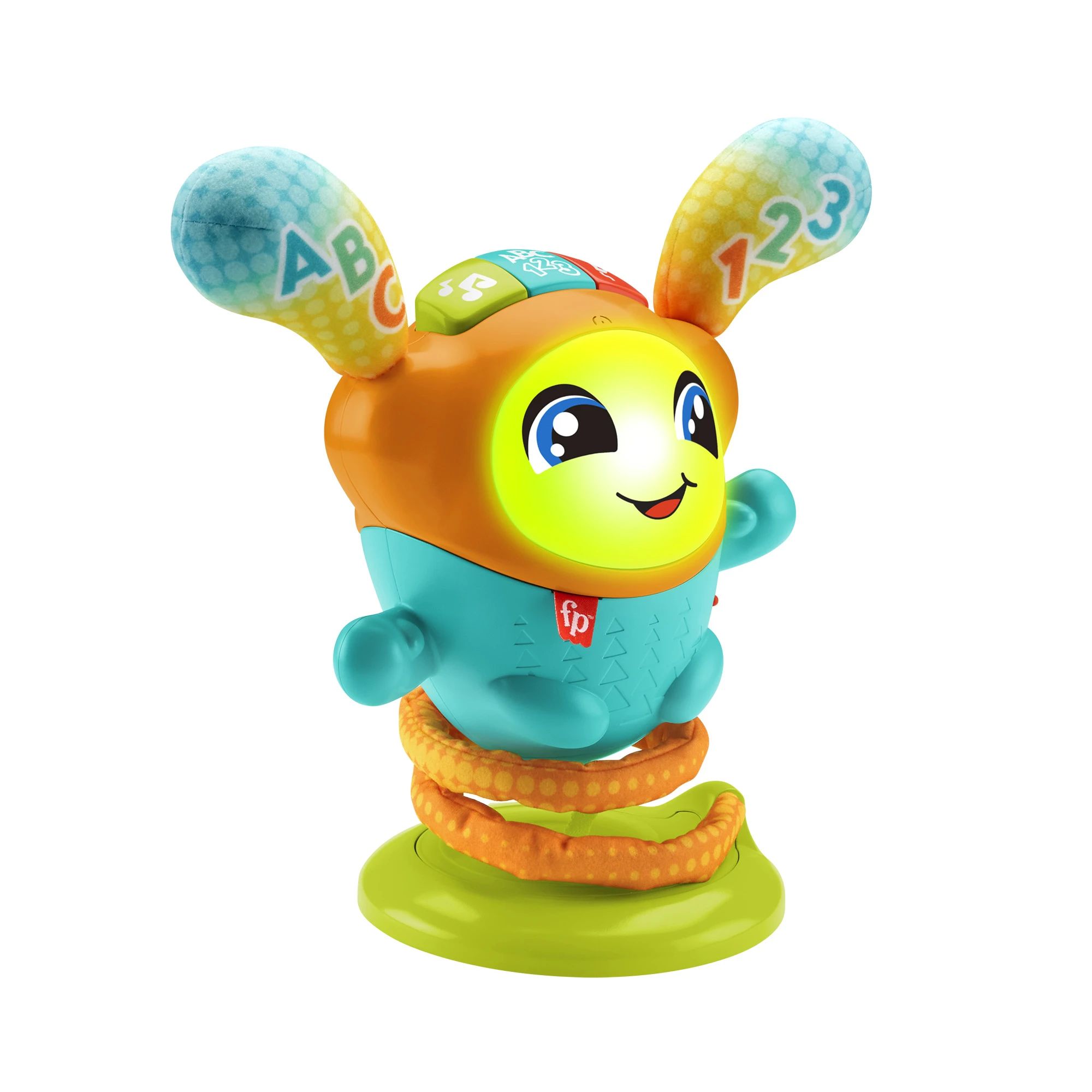Zīmols- Mattel Fisher Price. Artikuls- HYR71. Garums- 28 cm. Platums- 19 cm. Augstums- 33 cm. Krāsa- Daudzkrāsaina. Materiāls- Plastmasa, Plīša. Radio vadāma- Nē. Modelis- DJ Bouncin' Beats. Barošanas sistēma no baterijām- Jā. Baterijas- 4 x AA. Brīdinājums par rotaļlietām- Noņemt visus iepakojuma pielikumus, pirms nododot šo rotaļlietu bērnam. Uz iepakojuma esošo informāciju ieteicams saglabāt. Ieteicams lietot pieaugušo uzraudzībā. Var saturēt nelielas, asas detaļas ar ko bērns var aizrīties vai savainoties., Nelietojiet vienlaicīgi atšķirīga ražotāja piederumus. Noņemiet drošības detaļas, ja rotaļlieta tiek izmantota. Mainiet piederumus pieaugušo uzraudzībā. Nelietojiet vienlaicīgi vecas un jaunas baterijas. Nemetiet izlietotās baterijas sadzīves atkritumos – atstājiet tās speciālās atkritumu savākšanas vietās.. Ieteicamais vecums no- 9 mēn.. Ieteicamais vecums līdz- 3. g.. Obligātā garantija- 24 mēn. Garantija juridiskām personām- 12 mēn.