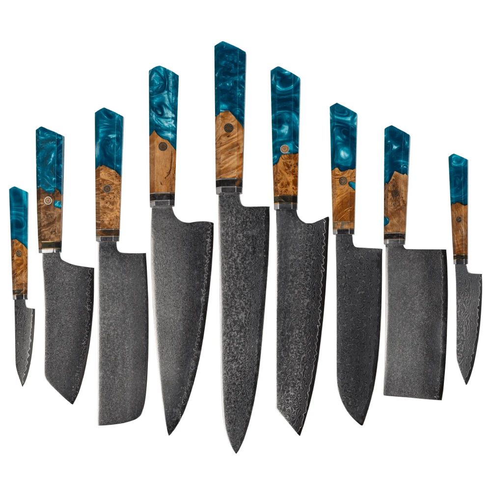 Damaskas tērauda virtuves nažu komplekts Usugiri JH-D-015 ir izstrādāts tā, lai kalpotu ilgi un paliktu ass, tāpēc jums nekad nebūs nepieciešams cits nažu komplekts.