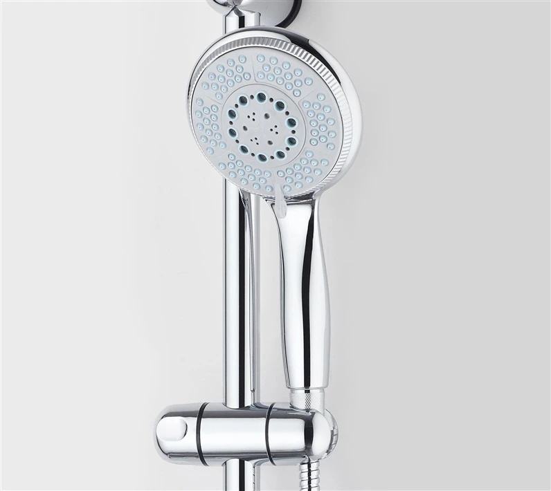 Preču zīmols - Domoletti. Modelis - DX611HC. Krāsa - Hroma. Materiāls - ABS plastmasa. Dzelzs. Nerūsējošais tērauds. Ar dušas galvu - Jā. Ar dušas šļūteni - Jā. Komplektā - Dušas statīvs. 5 režīmu dušas galva. dušas galvas turētājs. 1.5 m garš dušas šļūtene. ziepju trauks. . Garantija - 24 mēn. Papildus informācija - "Anti-calc" - viegli noņemt veidojušos kaļķu nogulsnes..