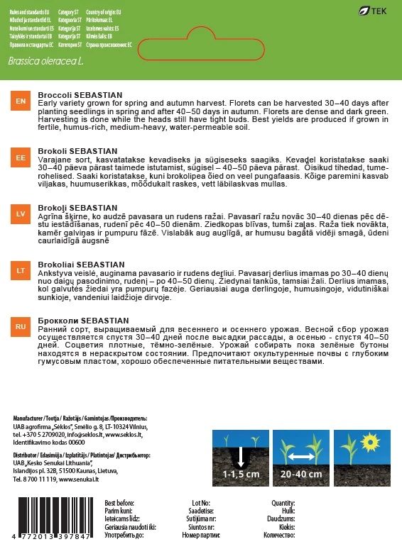 Zīmols- Garden Center. Dīgšanas sēklas- Nē. Augļu vai dārzeņu veids- Brokoļi. Svars- 1 g.