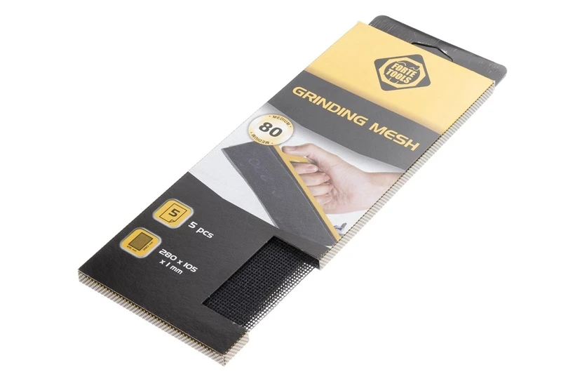 Zīmols- Forte Tools. Artikuls- Nėra. Garums- 28 cm. Platums- 10.5 cm. Smalkums- 80 - 80. Vienību skaits iepakojumā- 5. Papildus informācija- Krāsa: Melna.