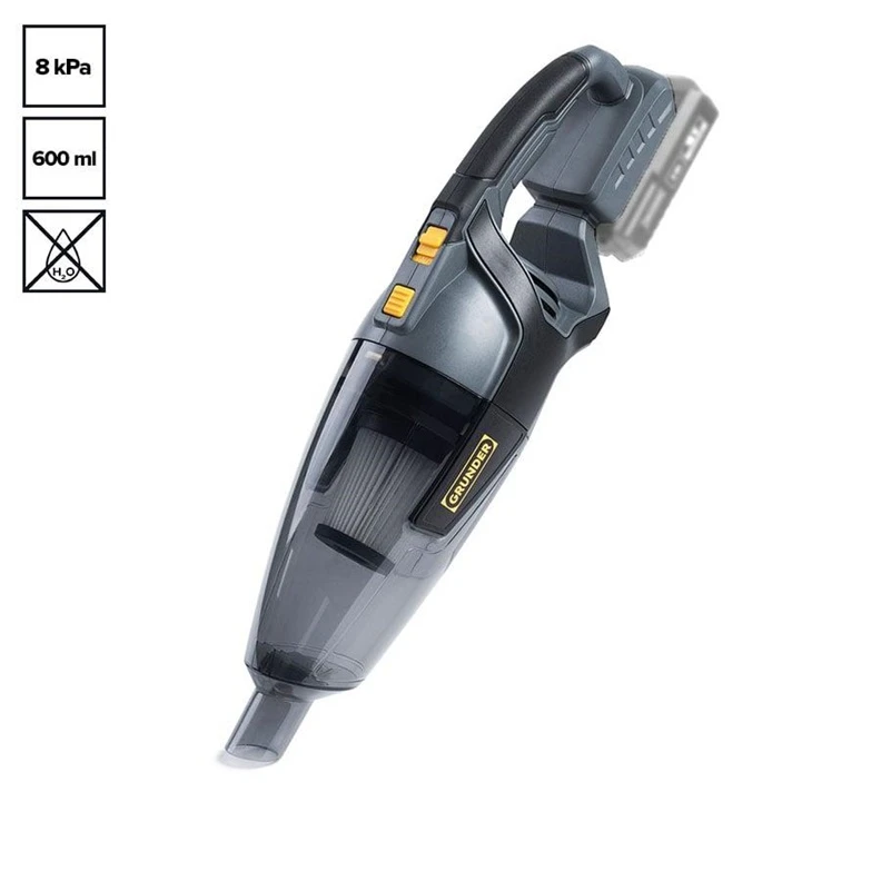Sausā uzsūkšana- Jā. Šķidruma uzsūkšana- Nē. Tvertnes tilpums- 0.6 l. Obligātā garantija- 24 mēn. Zīmols- Grunder. Artikuls- ZS-J180201. Maksimālā gaisa plūsma, m3/min- 0.6 m³/min. Trokšņa līmenis- 75 dB. Komplekts- Akumulators un lādētājs nav iekļauti komplektā..