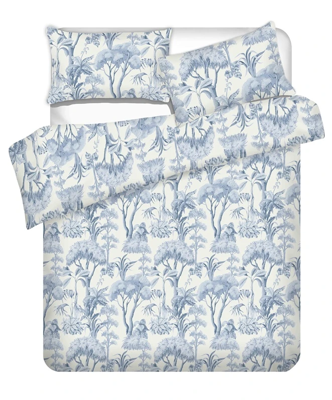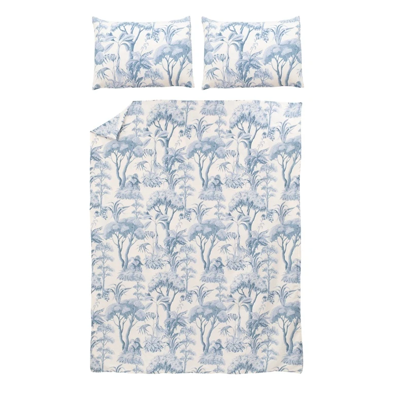 Zīmols- Domoletti. Spilvena pārvalka izmērs- 50 x 70 cm. Segas pārvalka izmērs- 200 x 220 cm. Krāsa- Gaiši zila, Balta. Pārklāja komplekts- 2 spilvenu pārvalki, Segas pārvalks. Auduma dizains- Augu motīvi. Stiprinājuma tips- Ar pogām. Obligātā garantija- 24 mēn. Auduma sastāvs- Kokvilna 100%. Materiāls- Satīna.