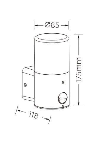 Zīmols- Domoletti. Spriegums- 230 - 230V. Aizsardzības līmenis (IP)- IP44. Ar kustību sensoru- Jā. Produkta veids- Āra sienas lampas. Platums- 8.5 - 8.5cm. Garums- 11.8 - 11.8cm. Augstums- 17.5 - 17.5cm. Artikuls- -. Spuldzītes ligzda- E27. Spuldzīte(-s) komplektā- Jā. Spuldzīšu skaits- 1. Maksimālā spuldzes jauda- 40 W. Korpusa krāsa- Melna. Virsmas krāsa- Balta. Ar gaismas sensoru- Nē. Obligātā garantija- 24 mēn.