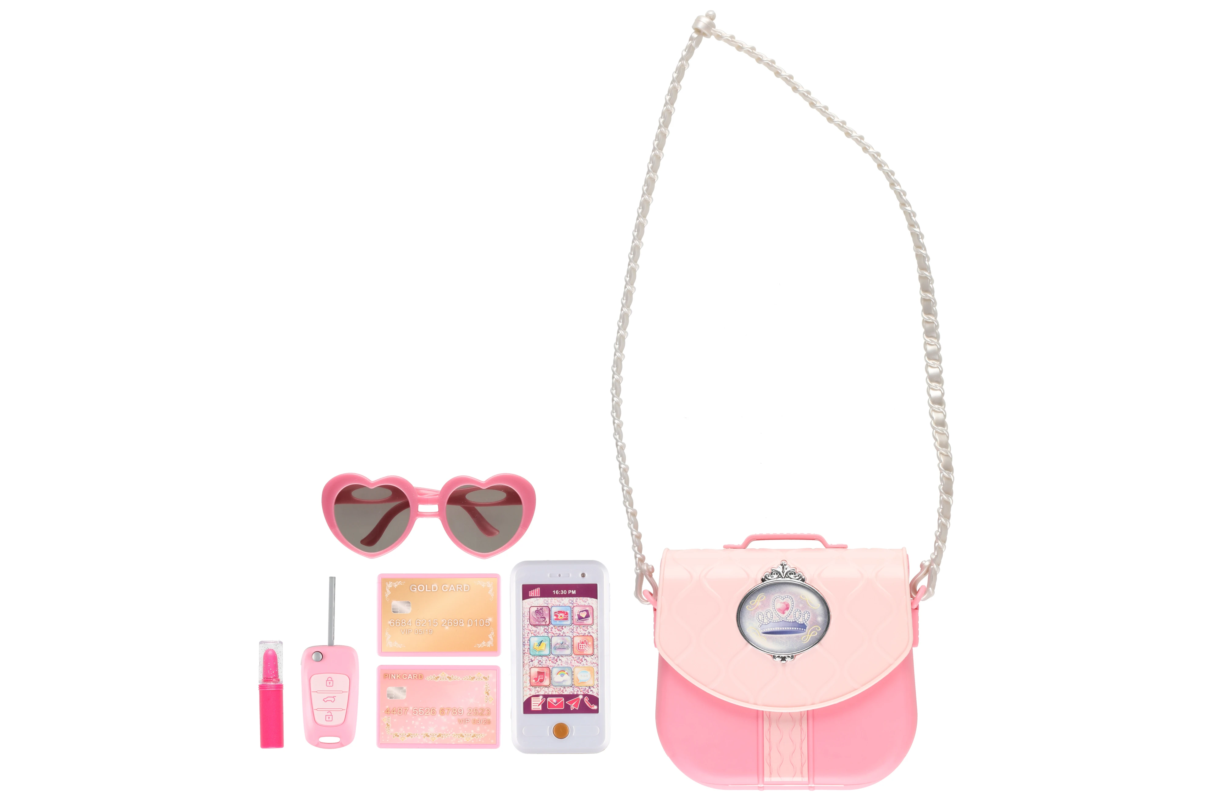 Komplektā ietilpst plecu soma, mobilais telefons ar skaņām (darbojas ar 1 gab CR2032 3 V bateriju, iekļauta komplektā), saulesbrilles, mašīnas atslēgas, lūpu krāsa, auskari un divas kredītkartes. Piemērots bērniem no 3 gadu vecuma.