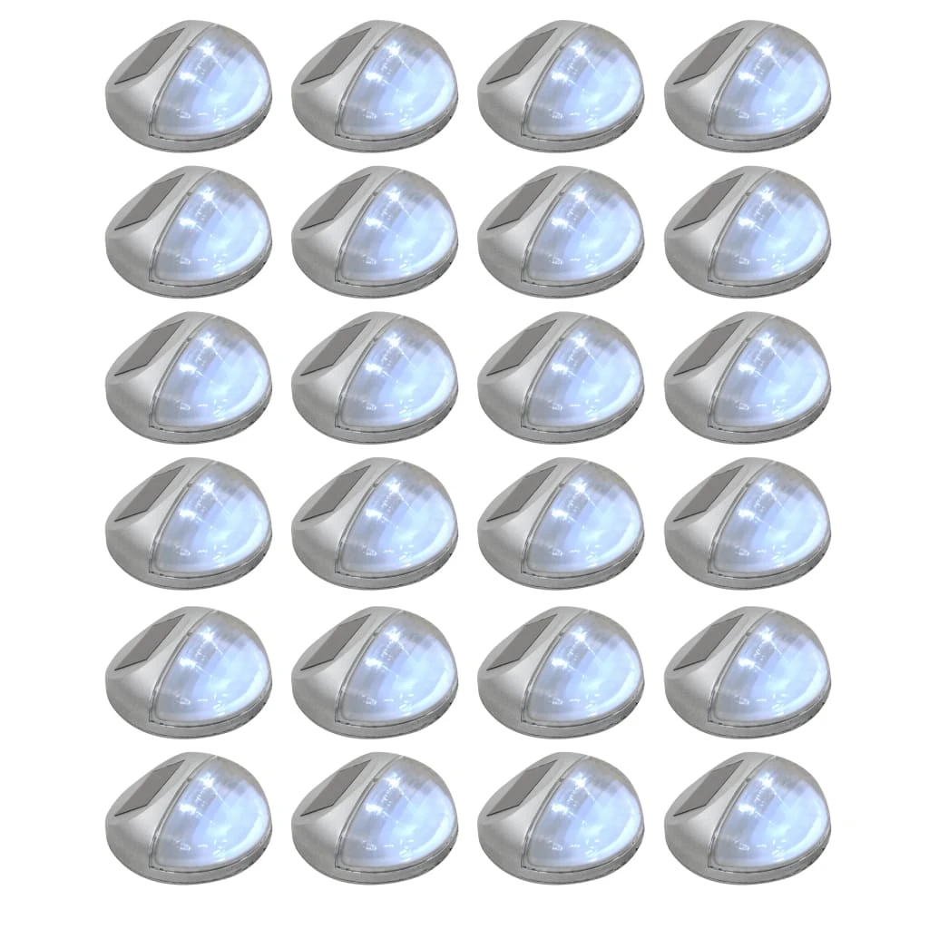 vidaXL āra solārās sienas lampas, LED, 24 gab., apaļas, sudraba krāsa