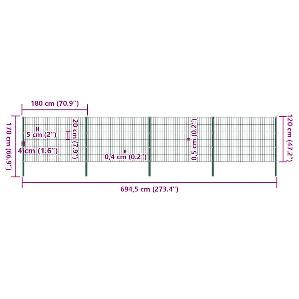 Sūtījumā iekļauti 12 x 2 D tipa žogu paneļi un 5 stabi.