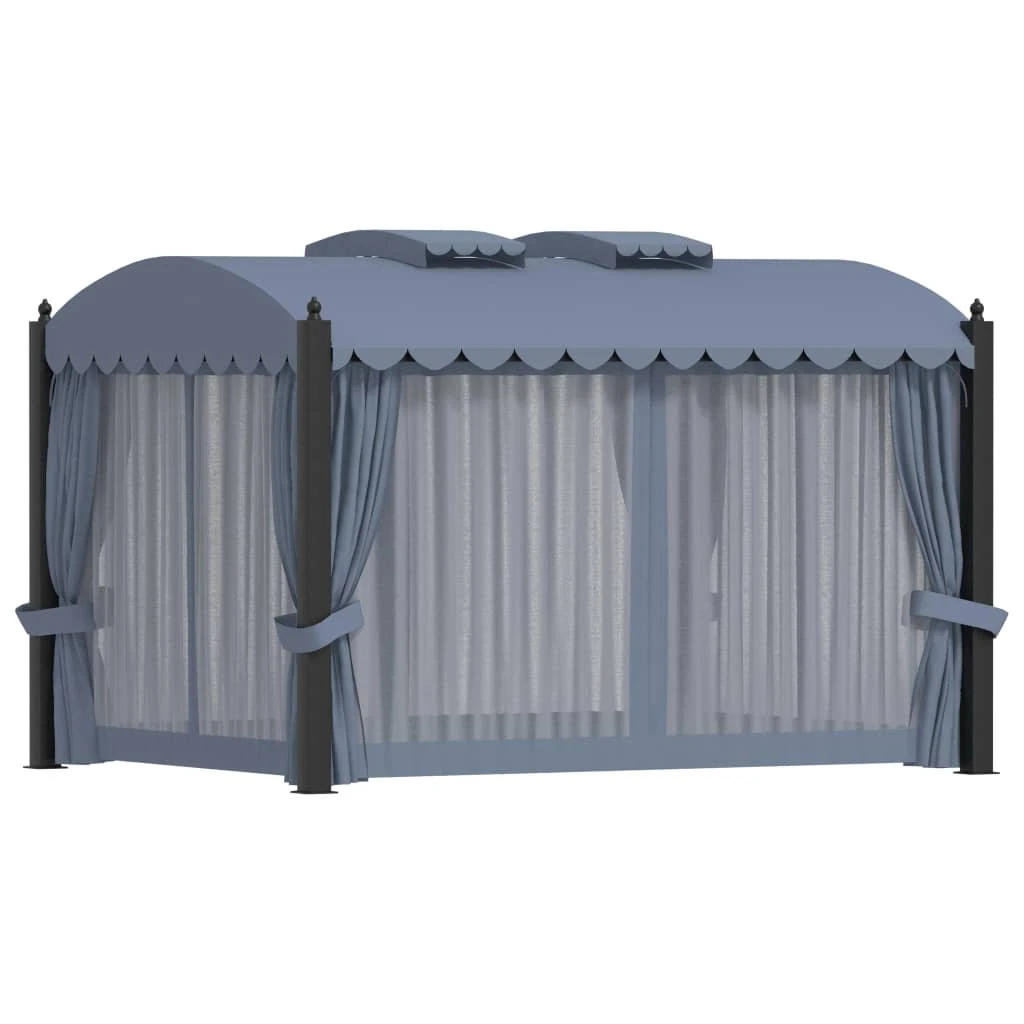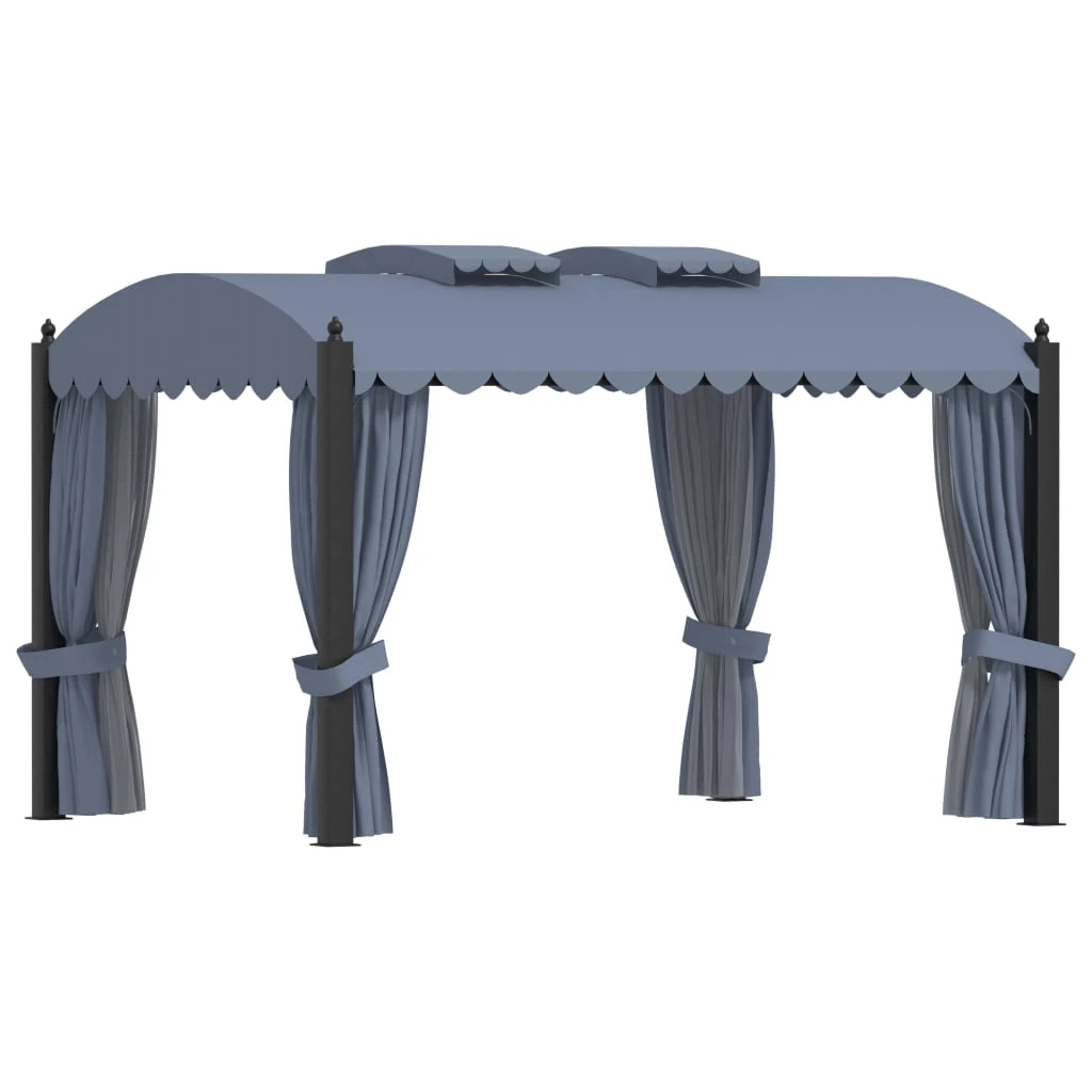 vidaXL dārza nojume ar aizkariem, 3x4 m, tērauds, antracītpelēka