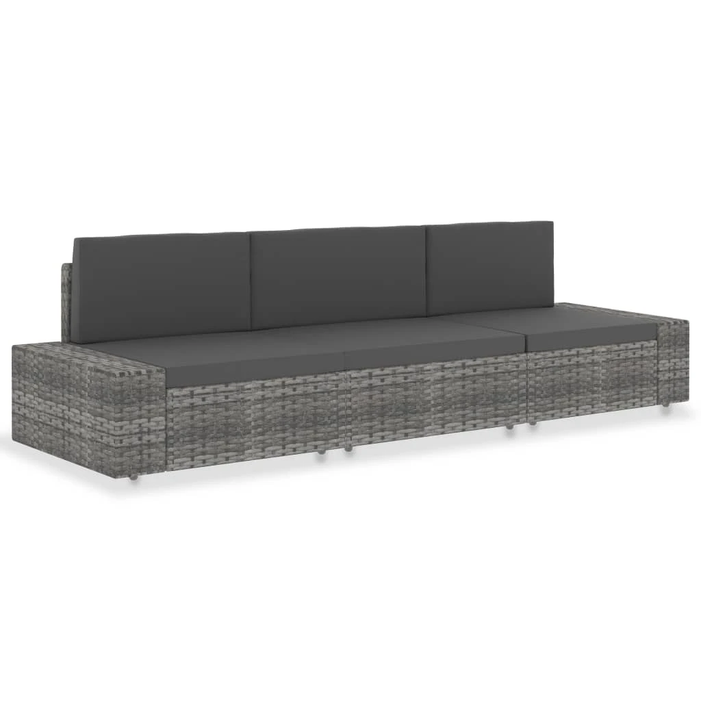 vidaXL moduļu dīvāns, trīsvietīgs, pelēka PE rotangpalma