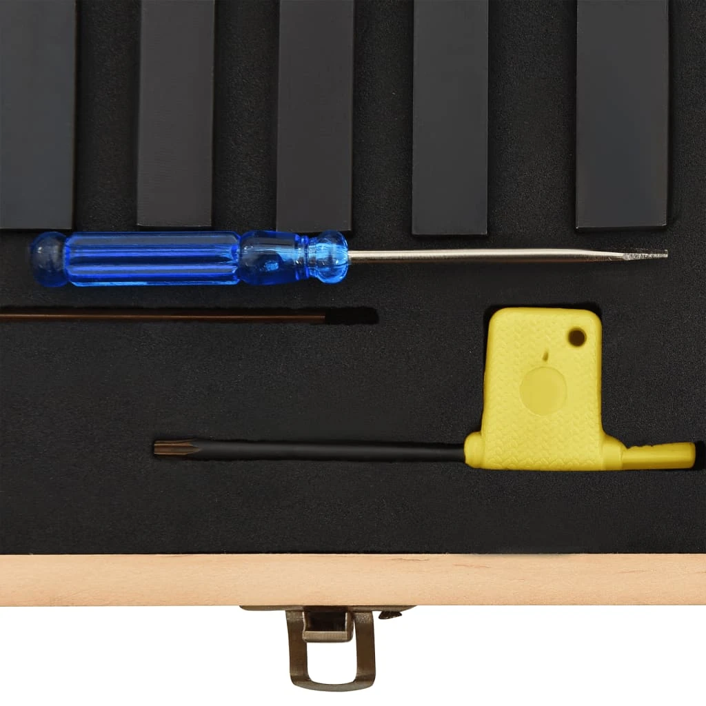 Instrumenti ir izgatavoti no oglekļa tērauda un cementēta karbīda, kas nodrošina augstu cietību un labu izturību. Instrumentu turētājam ir gluda, melna oksīda apdare, kurā ir instrumentu roktura stila un kāta izmēra marķējumi. Katra rīka ieliktnis ir nomaināms. Sūtījumā ir iekļautas arī maināmas atslēgas. Komplekts ir salikts kastītē ērtai uzglabāšanai un transportēšanai.