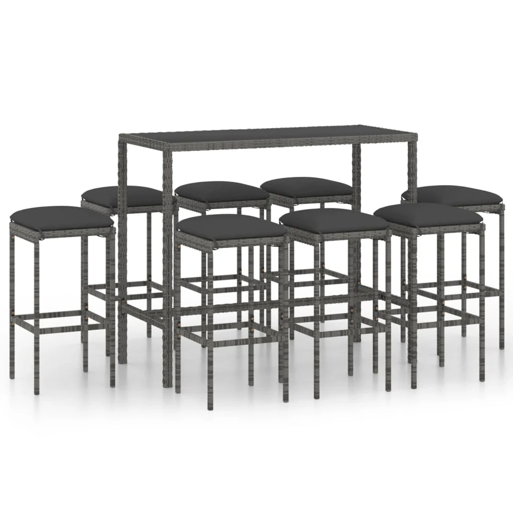 vidaXL 9-daļīgs dārza mēbeļu komplekts ar matračiem, PE rotangpalma