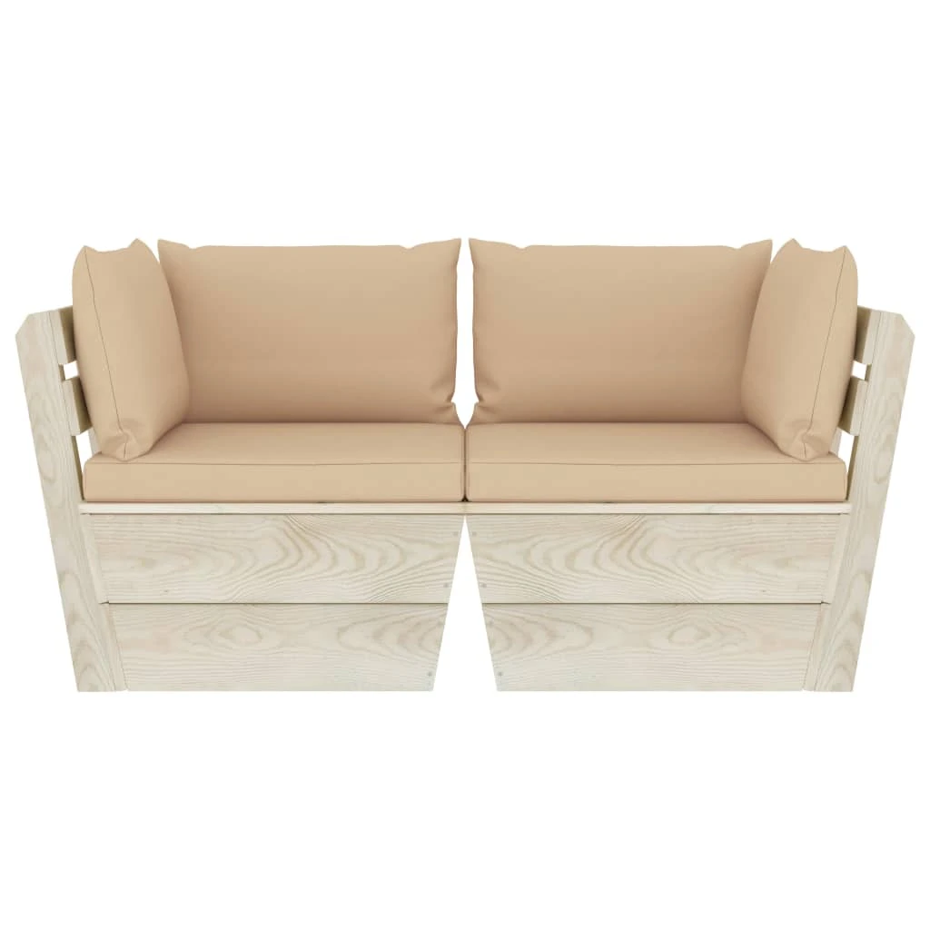 vidaXL 2-vietīgs dārza palešu dīvāns ar matračiem, egles koks
