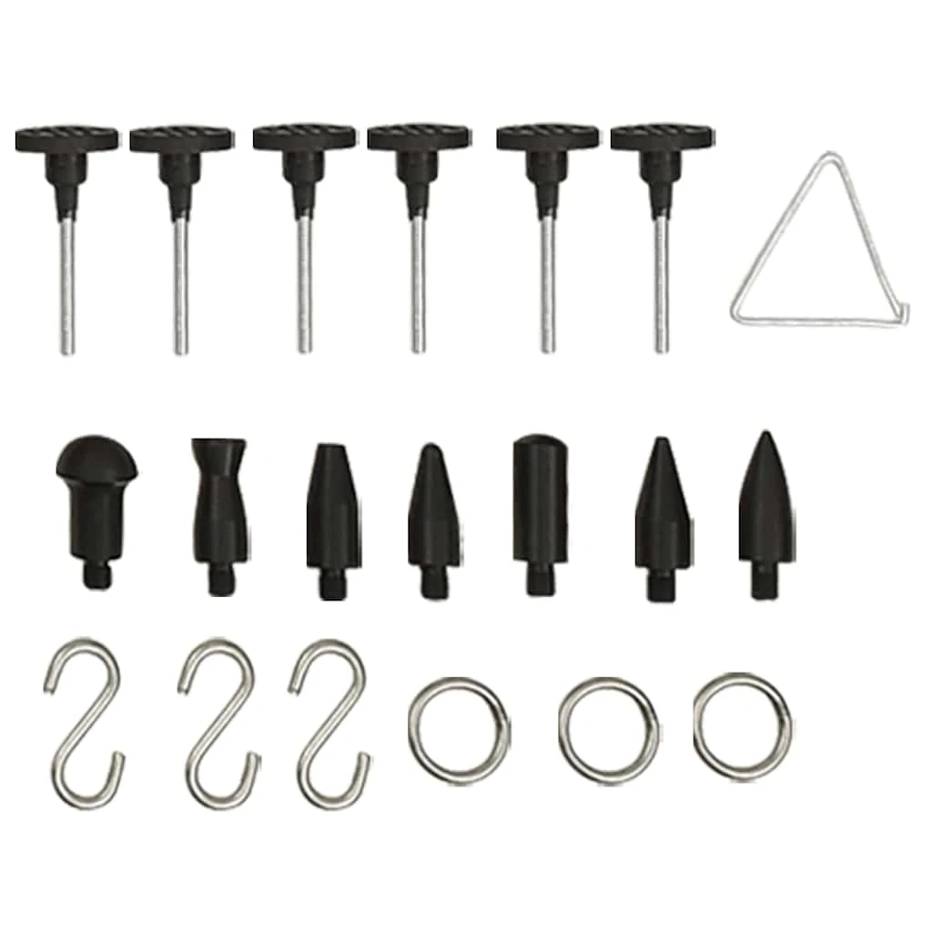 Šajā bukšu izlīdzināšanas instrumentu komplektā ir iekļautas dažādu izmēru kapsulas, kas piemērotas lielākajai daļai bukšu un krusas radītu bojājumu novēršanai. Nerūsējošā tērauda slīdošais āmurs ir paredzēts lielu bukšu labošanai. Bukšu izvilcējs un bukšu izlīdzinātājs ir piemērots arī mazu un vidēju iespiedumu labošanai. Izmantojot šos efektīvos un drošos instrumentus, bukšu labošanas process nesabojās auto virsbūves krāsojumu. Ar LED paneli jūs varēsiet atrast iespiedumus uz plakanām metāla virsmām. Šie bukšu izlīdzināšanas instrumenti ļaus jums lēti salabot automašīnu, motociklu un citu transportlīdzekļu virsbūves daļas.