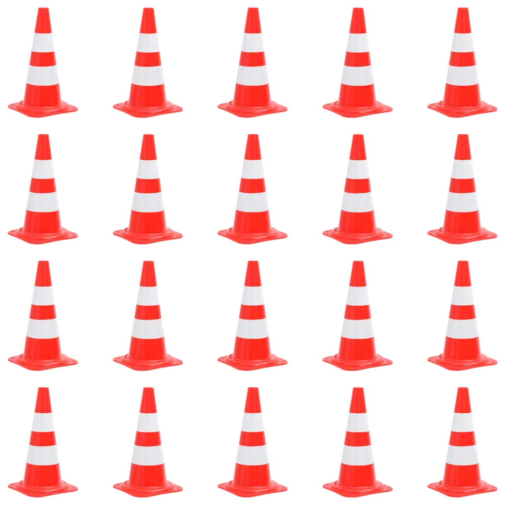 vidaXL atstarojoši satiksmes konusi, 20 gab., sarkanbalti, 50 cm