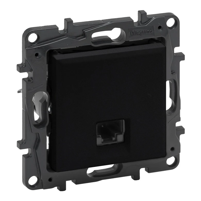 Zīmols - Legrand. Artikuls - 863563. Sērija - Niloe Step. Montāža - Iebūvējama. Rāmis - Nē. Ligzdu skaits - 1. Materiāls - Plastmasa. Krāsas nosaukums - Melna.
