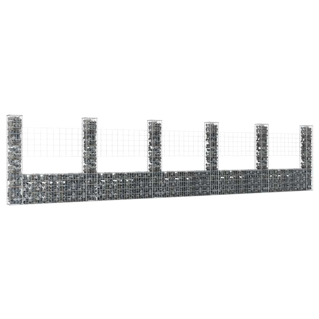 vidaXL gabionu siena ar 6 stabiem, U-forma, dzelzs, 620x20x150 cm