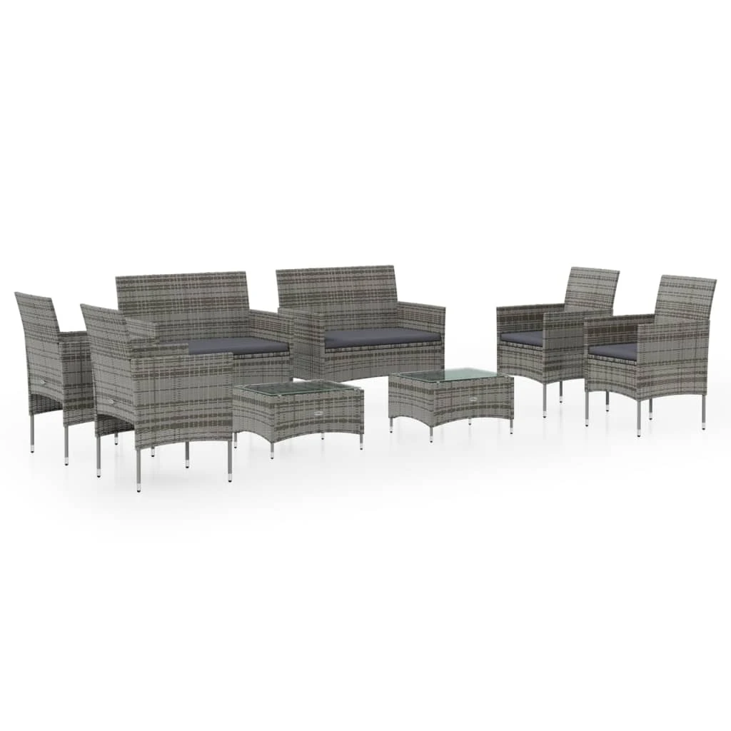 vidaXL 8-daļīgs dārza atpūtas mēbeļu komplekts, pelēka PE rotangpalma