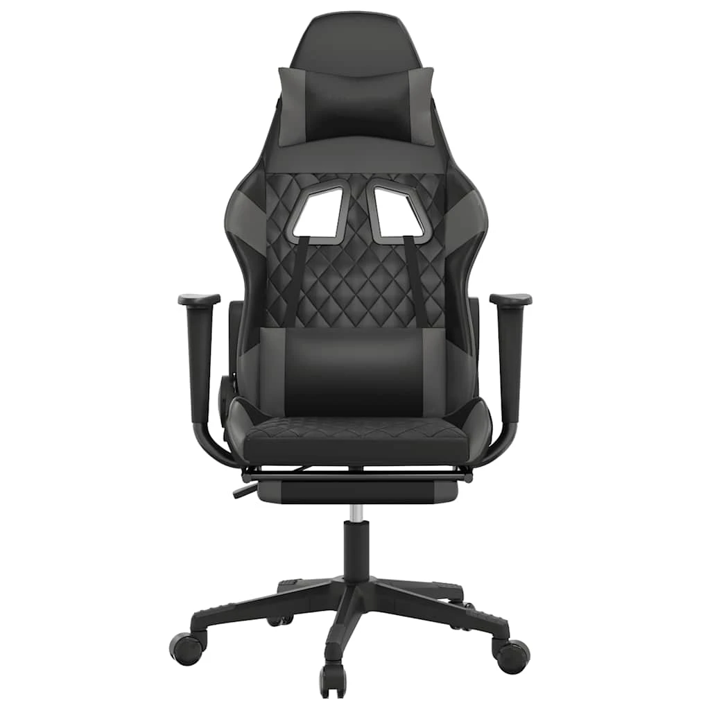 vidaXL masāžas datorkrēsls ar kāju balstu, melna, pelēka mākslīgā āda