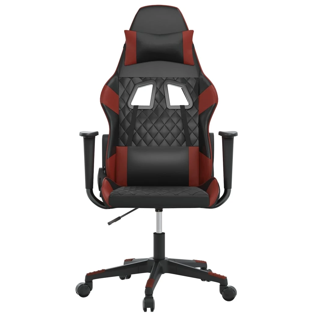 vidaXL masāžas datorkrēsls ar kāju balstu, melna, sarkana mākslīgā āda